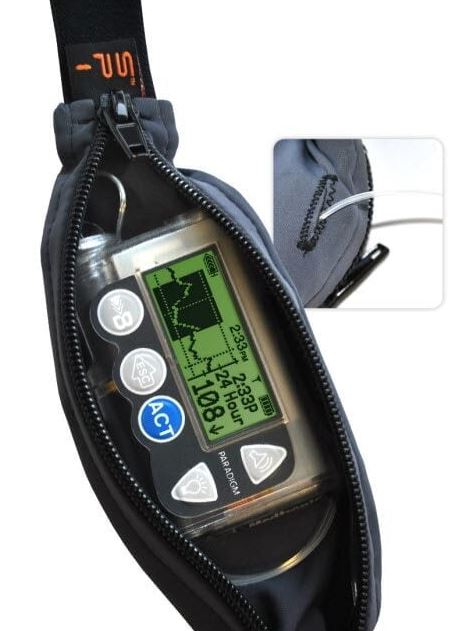 Adult SPIbelt Waist pouch – insulīna sūkņa somiņa ar rāvējslēdzēju un iestrādātu caurumu infūzijas sistēmai, jostas daļā regulējama. Piemērota pieaugušajiem. Piemērota visiem MiniMed insulīna sūkņu modeļiem.